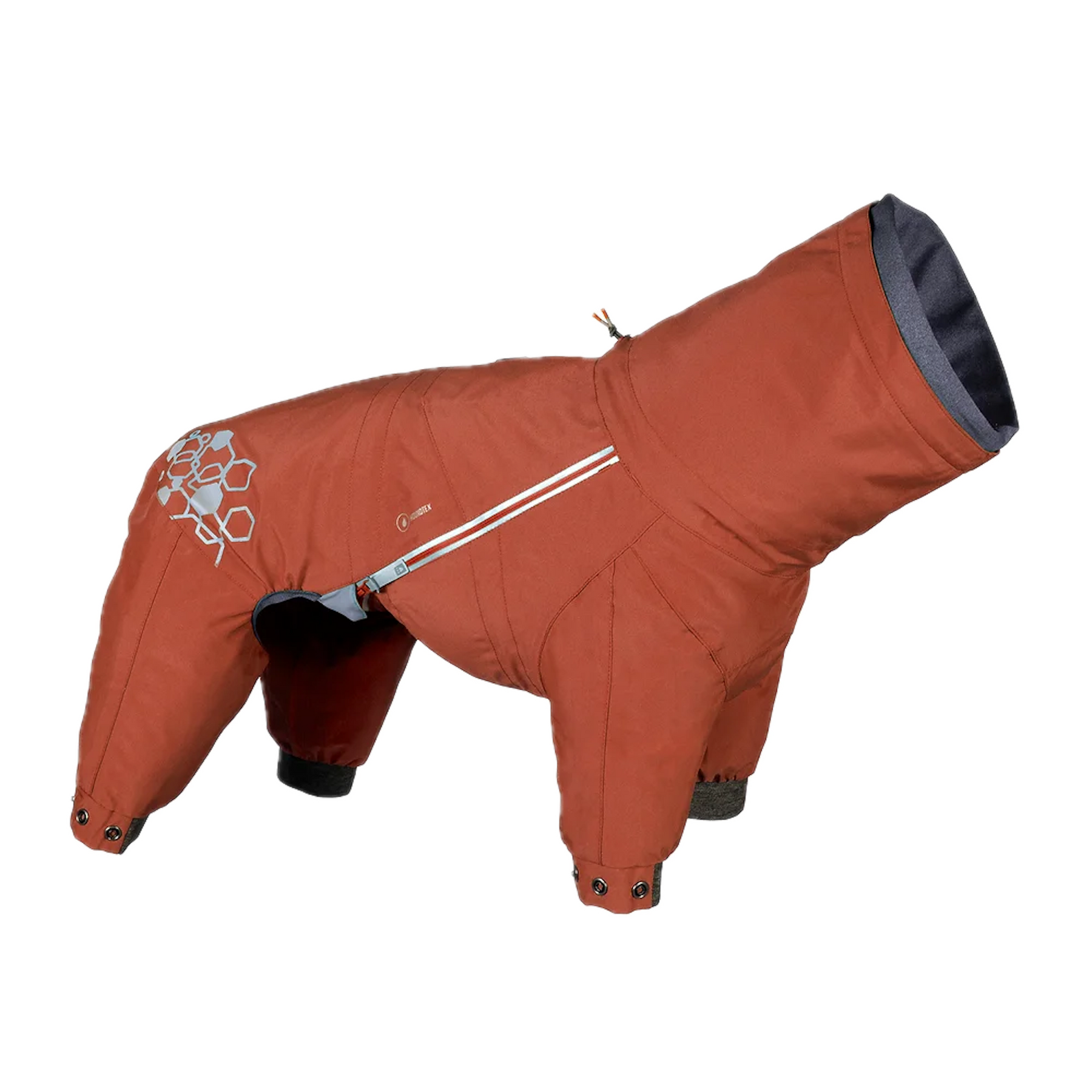 The Overall's Clever Half-Zip Construction Makes Dressing And Removal Quick And Easy, Something You And Your Dog Will Both Appreciate. The Mudventure Overall ECO Also Features Incredible Adjustability. Handy Elastic Cords Let You Fine Tune The Back Length, Leg Length, Waist, Chest And Neck To Find Your Dog's Perfect Fit. The Pant Legs Even Have Sturdy Snap Studs For Dogs That Want A More Tapered Leg Fit. Another Highlight Is The Overall's Rainstopper Collar That Keeps Wetness Out And Off Of Your Dog's Neck. Put It All Together And That's How You Stay Dry And Comfortable Longer In Any Weather.